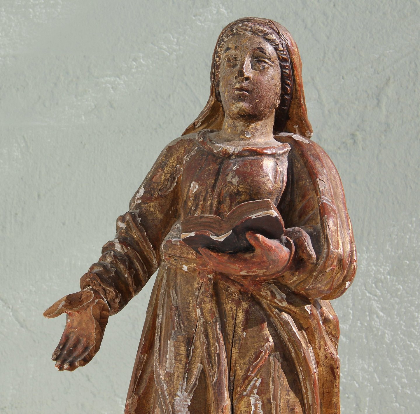 Beskrivelse: Den Hellige Birgitta af Vadstena Helgenstatue forgyldt træ 17. årh ca 48 cm Ikon