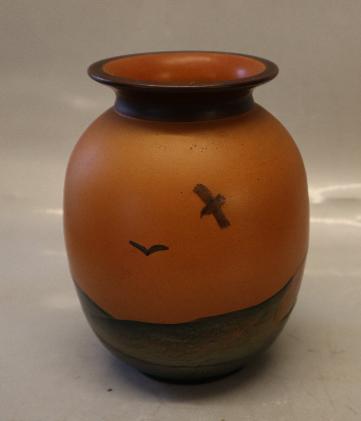 477 X Vase med krager 18 cm Axel Sørensen 1939 Keramik fra P. Ipsens Enke Kgl. Hof. Terracottafabrik 1843-1955 I god brugt stand