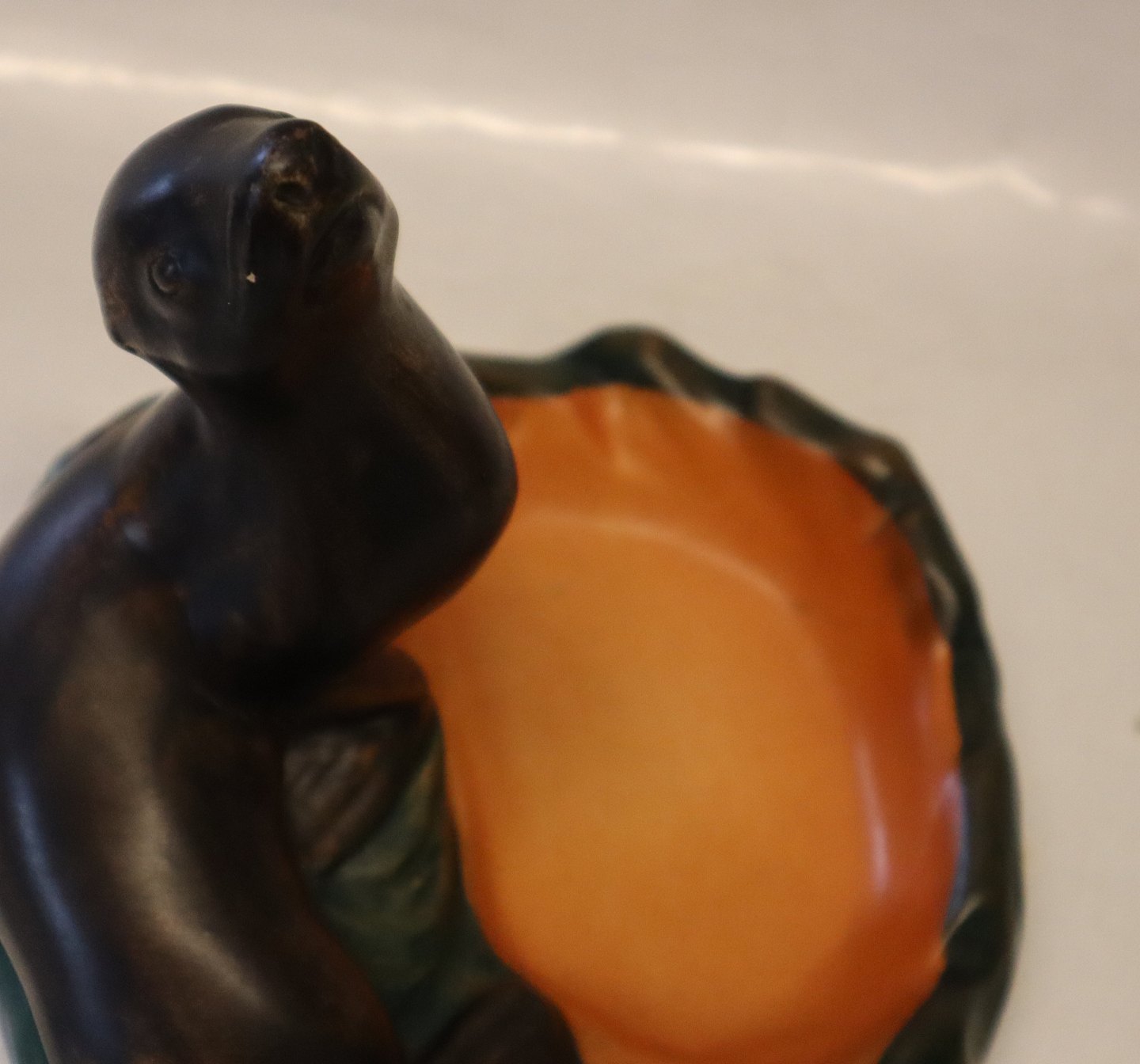 285 XVI Skål med søløve 18 x 18 cm Axel Sørensen 1929 Keramik fra P. Ipsens Enke Kgl. Hof. Terracottafabrik 1843-1955 I god brugt stand