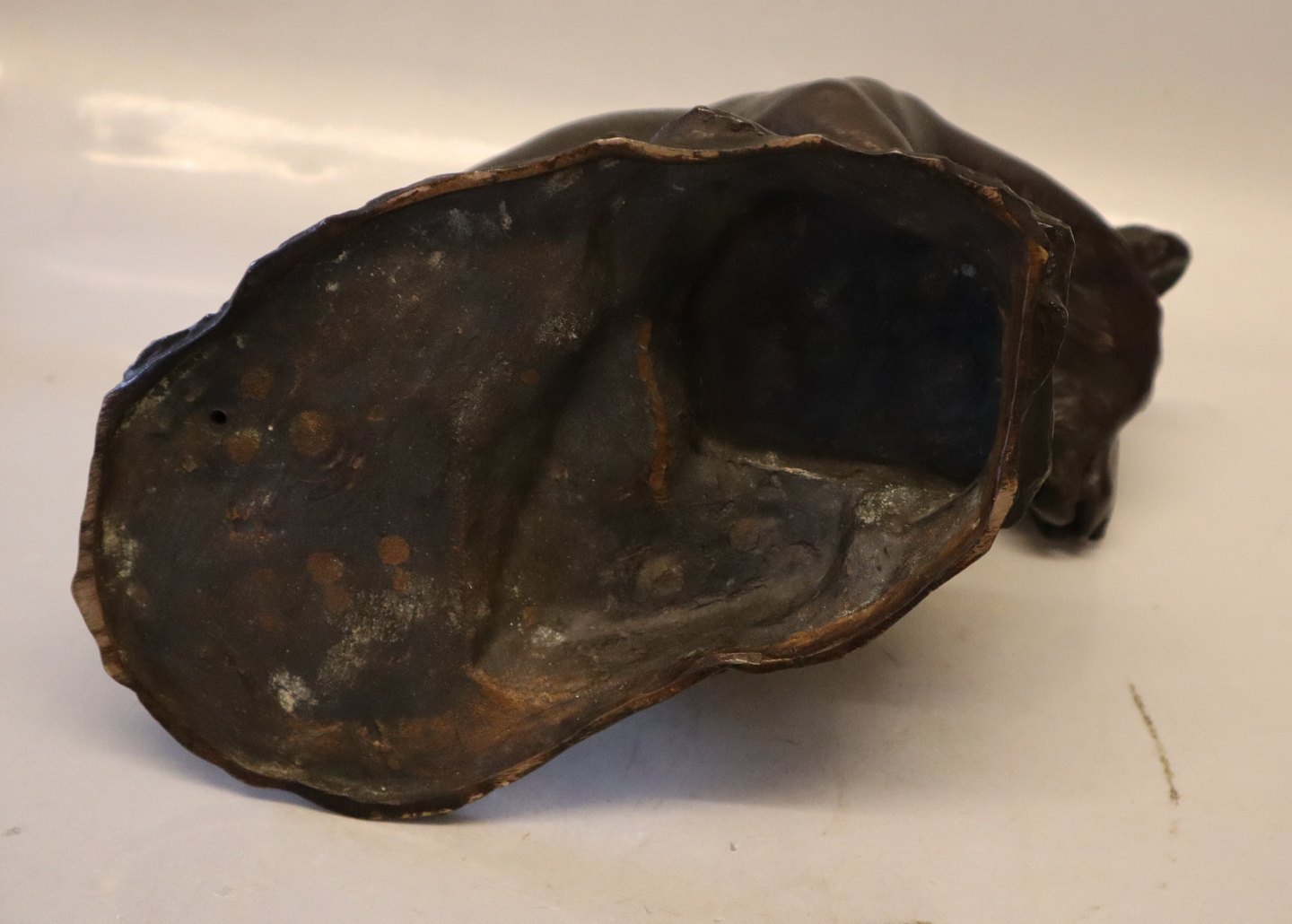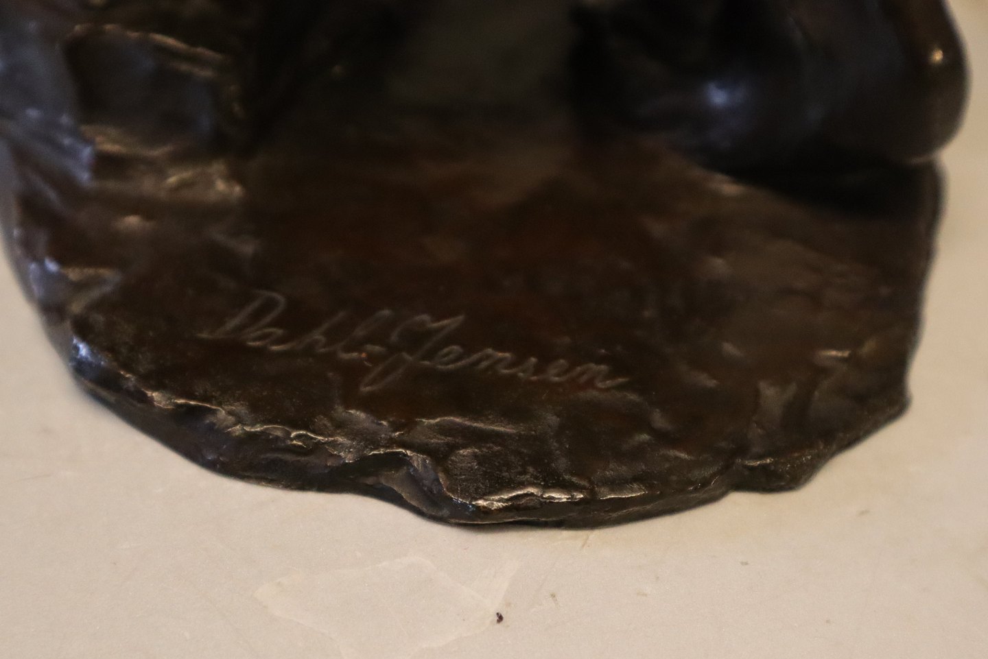 Beskrivelse: Dahl Jensen Bronze Bjørn 24 x 30 cm Signeret Samme model som de brune bjørne i porcelæn 1017 Brun Bjørn, stor (DJ) 24 cm og Dahl Jensen 1122 Lille bjørn (DJ) 9,8 cm