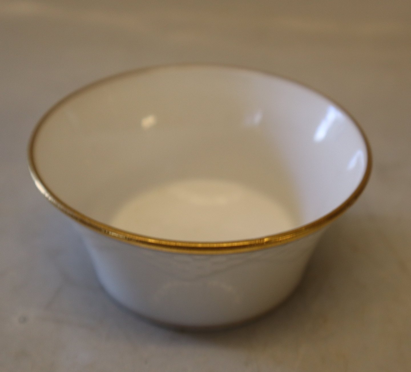 193 Lille rund skål d: 8,5 cm. Til tesi Bing & Grøndahl Hartmann Hvidt porcelæn med dobbelt guldkant. Bing & Groendahl I hel og fin stand
