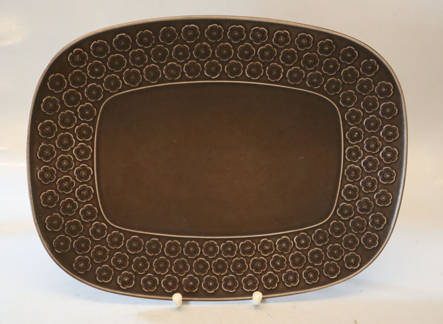 402 Fad 35 x 24,5 cm Umbra Brun Quistgaard Nissen Kronjyden stentøjsstel. I fin og hel stand. Stemplet Kronjyden eller Bing & Grondahl Copenhagen Stoneware: Designet for Kronjyden, Nissen B&G af Jens Harald Quistgaard IHQ