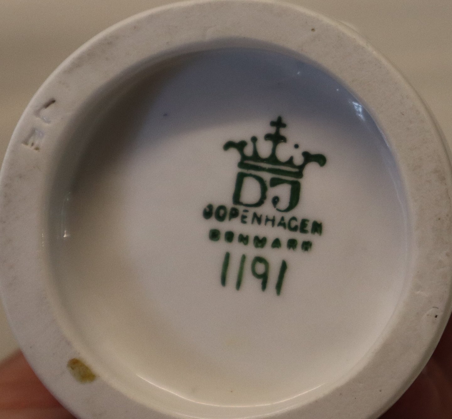 : 1191 Smed (DJ) 13,5 cm, hvid Dahl Jensen. Mærket med kongelig krone og DJ Copenhagen i hel og fin stand.