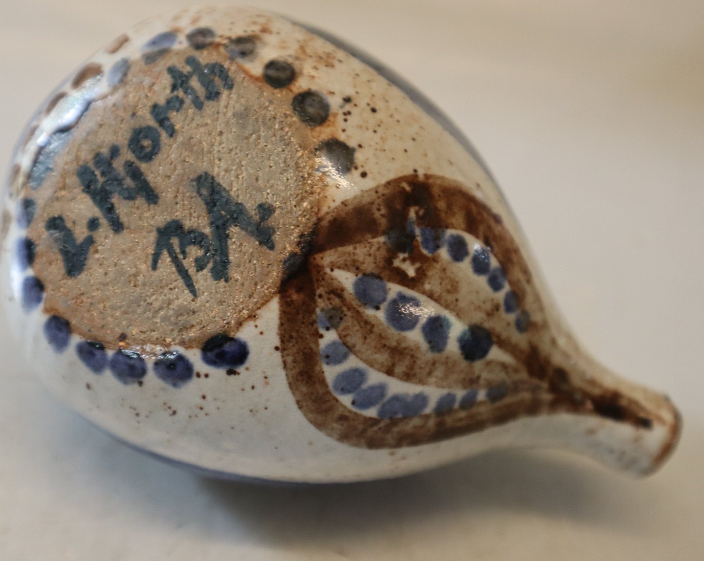 Beskrivelse: Bornholmsk Keramik L. Hjort Fugl ca 10 x 13 cm Signeret BA. Birgit Andersson Unika