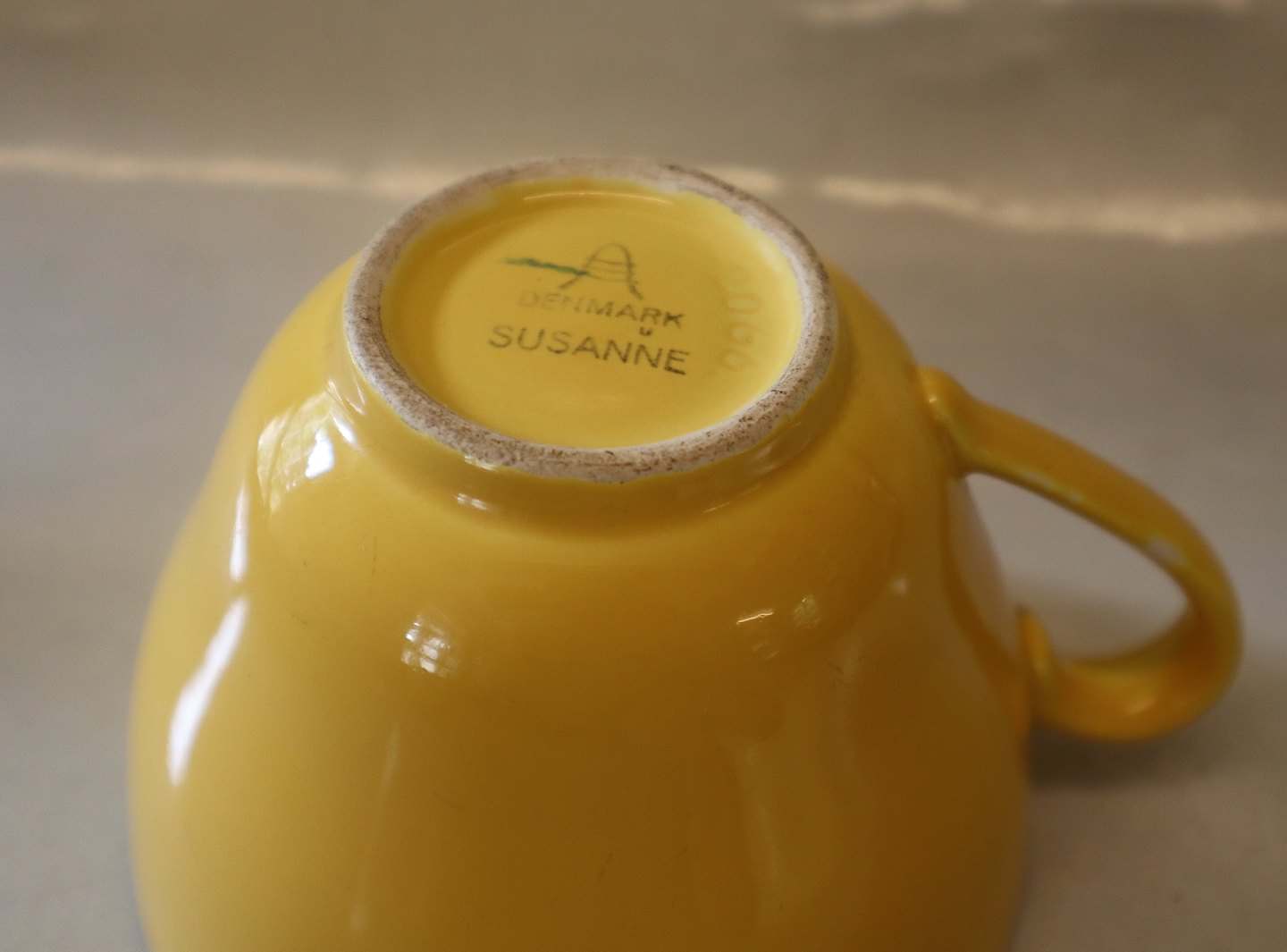 Tekop med underkop, Lyseblå Susanne Gul Confetti Aluminia fajance