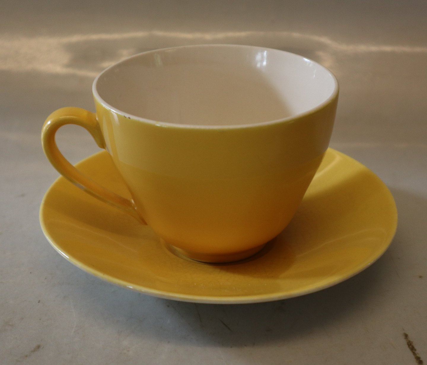 Tekop med underkop, Lyseblå Susanne Gul Confetti Royal Copenhagen Aluminia fajance spisestel - kaffestel