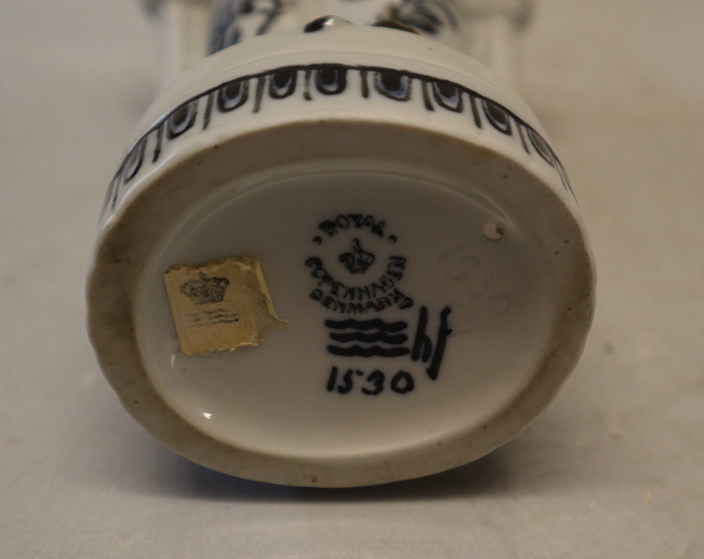 Beskrivelse: Kgl. 1530 Kgl. Pige med blomster 29.5 cm Georg Thylstrup Musselmalet Signeret GT 1913 2 sortering pga af lille brændingsrevne