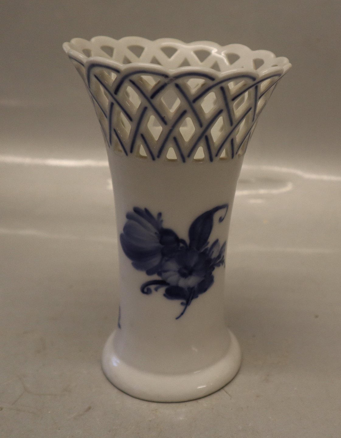 8235-10 Vase m/fletværk øverst 17 cm Kongelig Dansk Porcelæn Blå Blomst Flettet