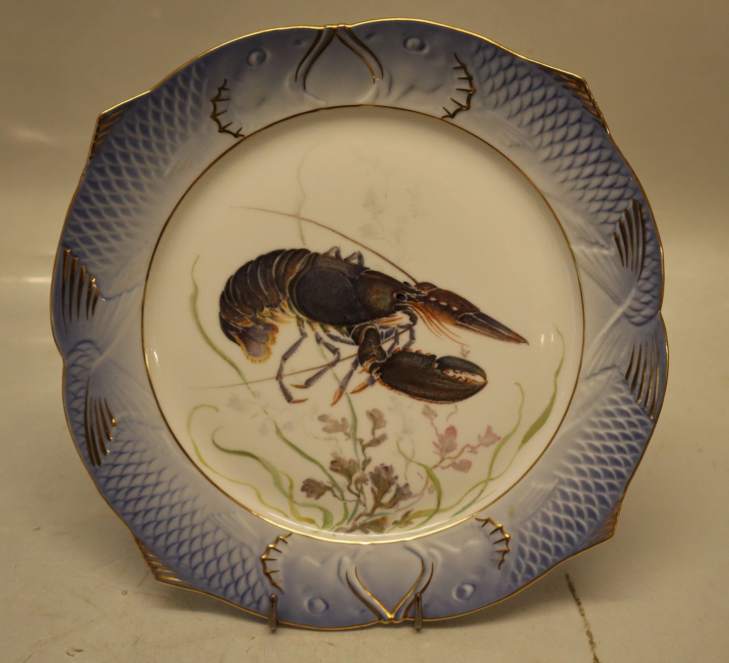 1212-3002 Fisketallerken 24 cm Homarus vulgaris (Hummer) Houarus Vilgaris Kongelig Dansk Blå Fiskestel # 19