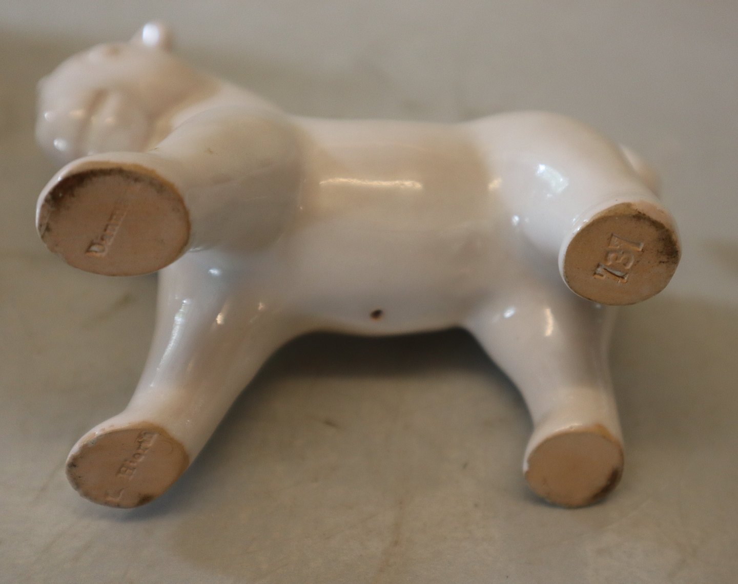 : L. Hjorth 737 Hvidt føl 10 x 12 cm Dansk Keramik fra Bornholm I fin og hel stand