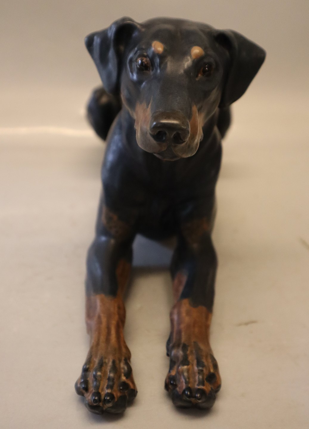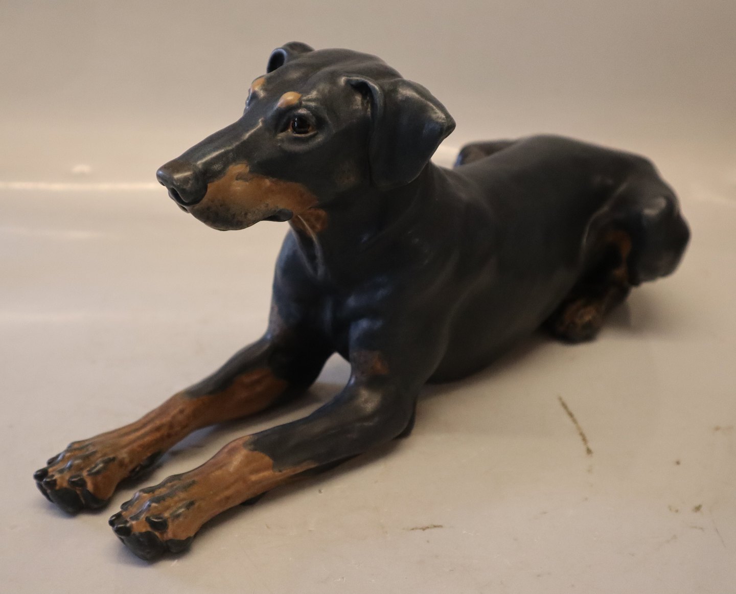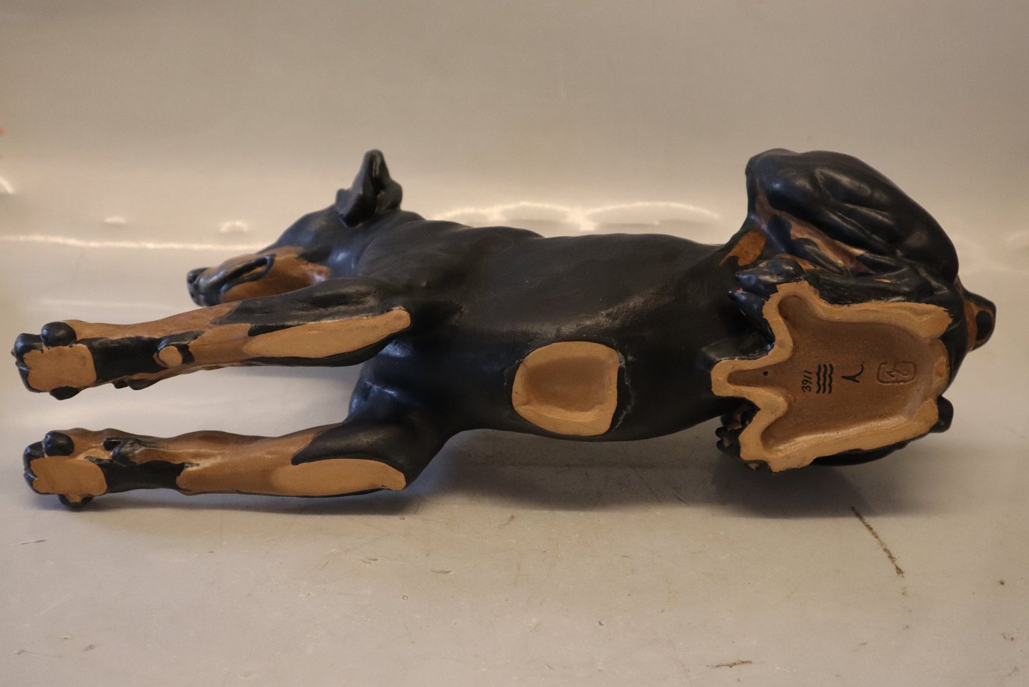 3911 Kgl. Aluminia Fajance Dobermann 16.5 x 38 cm Jeanne Grut Royal Copenhagen Aluminia fajance Hundefigur Dobbermann Pinscher