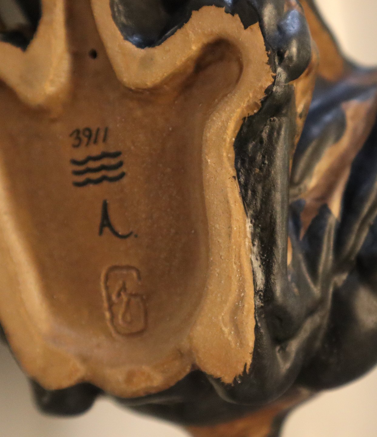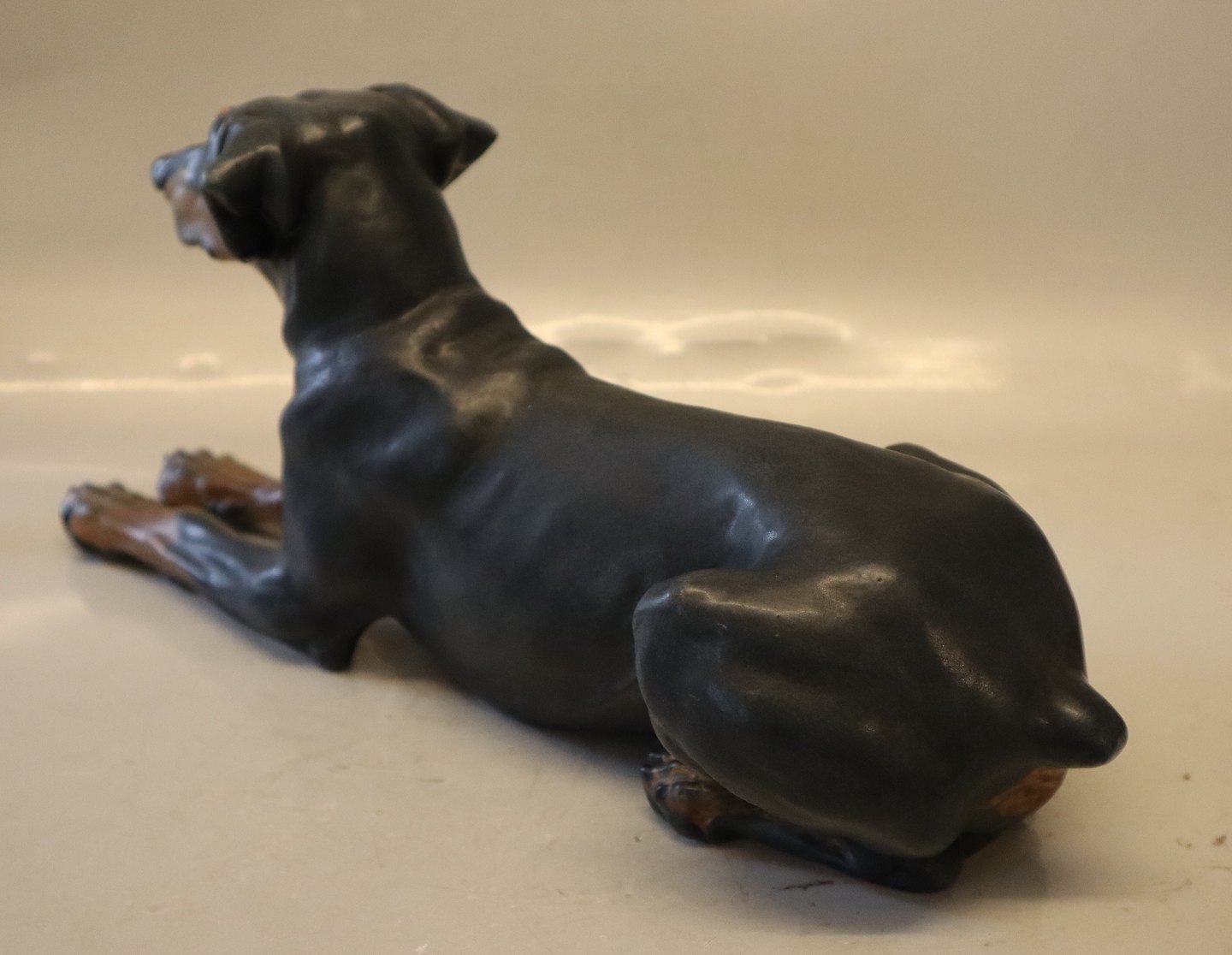 3911 Kgl. Aluminia Fajance Dobermann 16.5 x 38 cm Jeanne Grut Aluminia kunstfajance