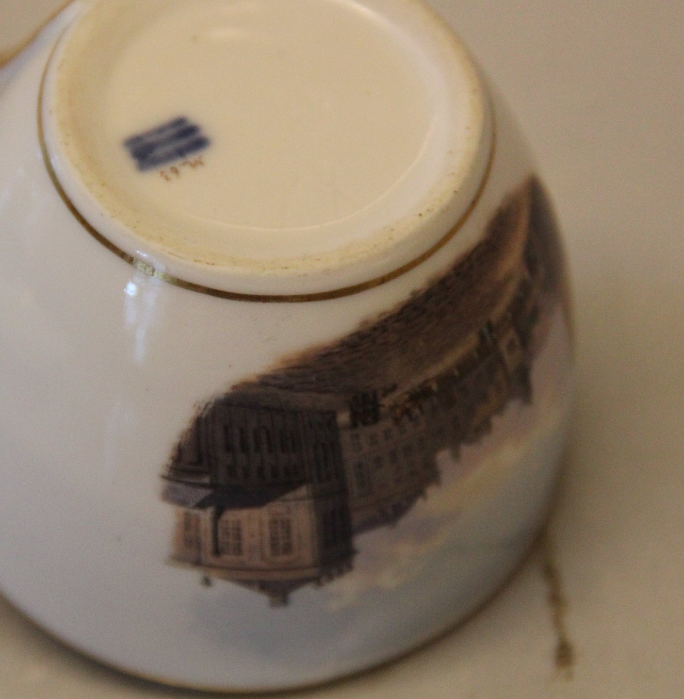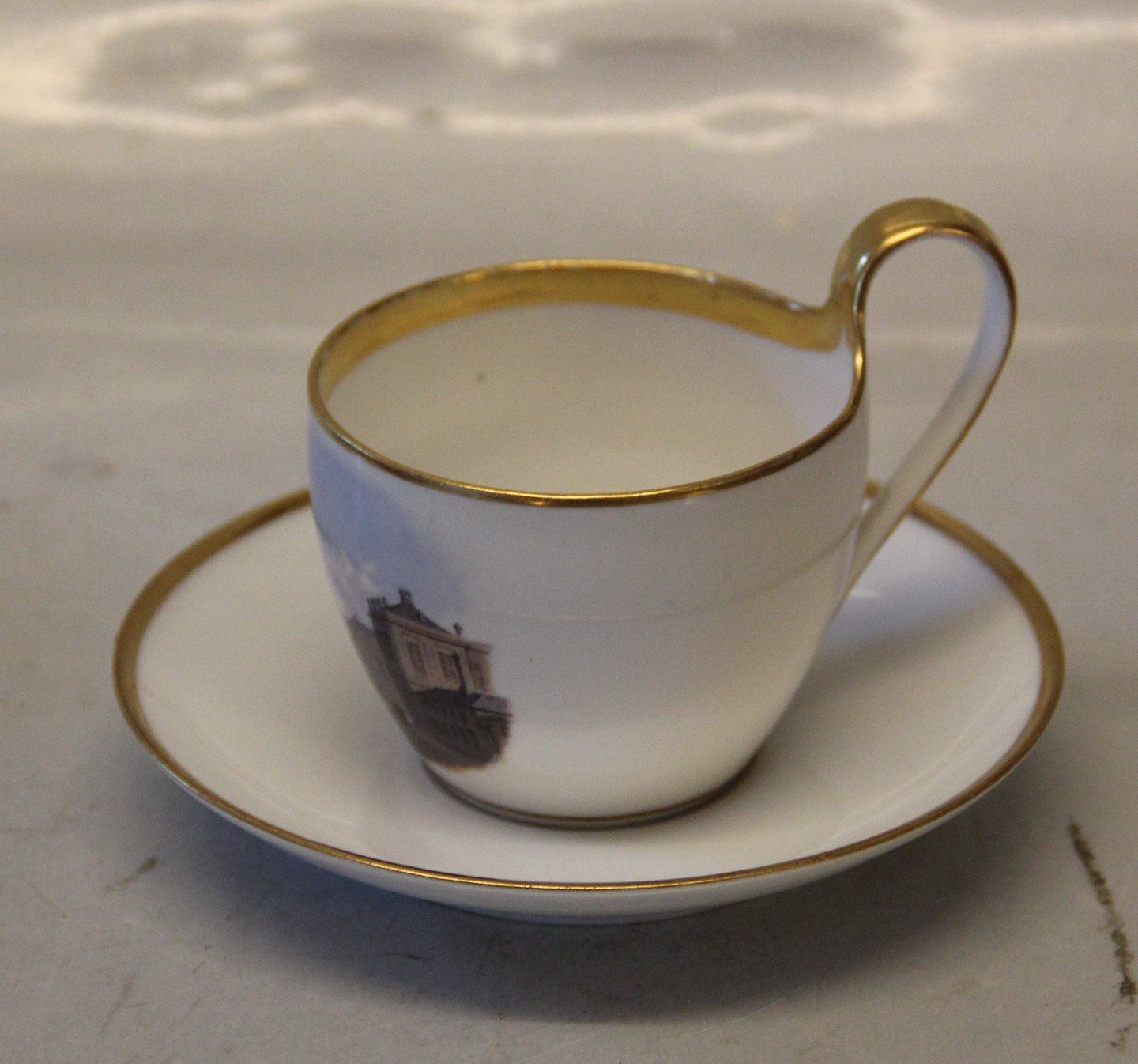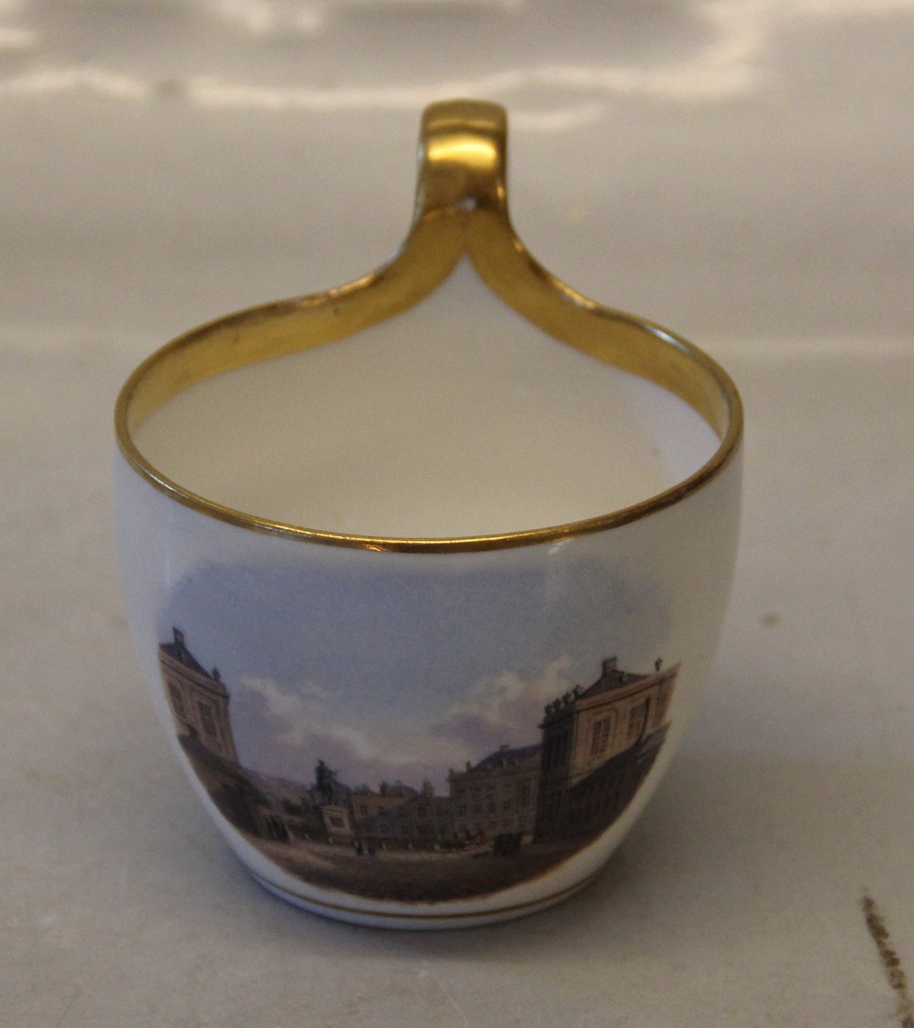 Amalienborg set fra Frederiksgade Kgl. Antik Højhankskop 6.3 x 8 cm (hanken 8.5 cm) og underkop 14 cm