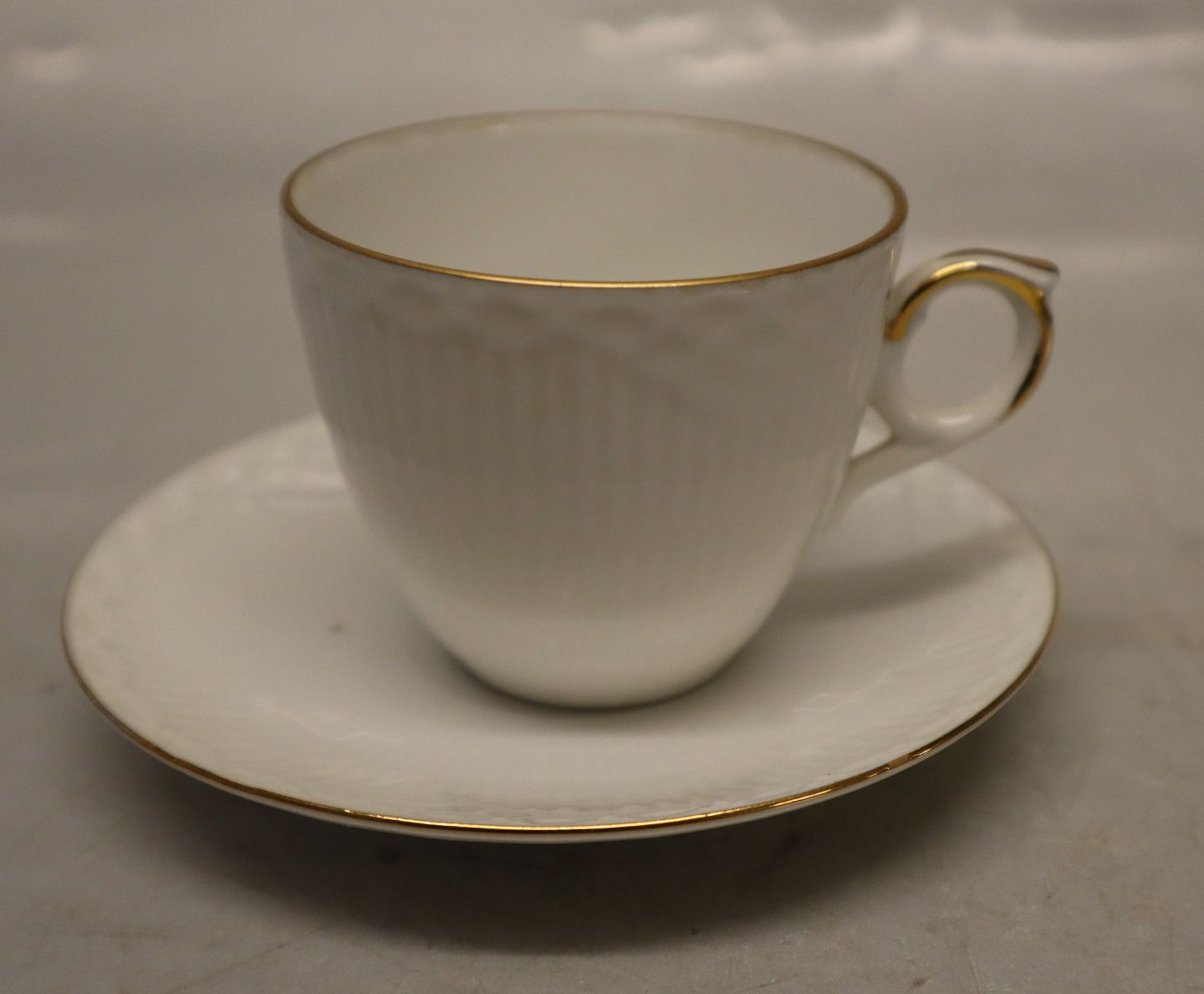 1275-528 Kaffekop, Mokka 5.5 x 6.5 cm (054) og underkop 10.5 cm (055) (054) Tradition Royal Copenhagen 1275 - hvid halvblonde med guldkant