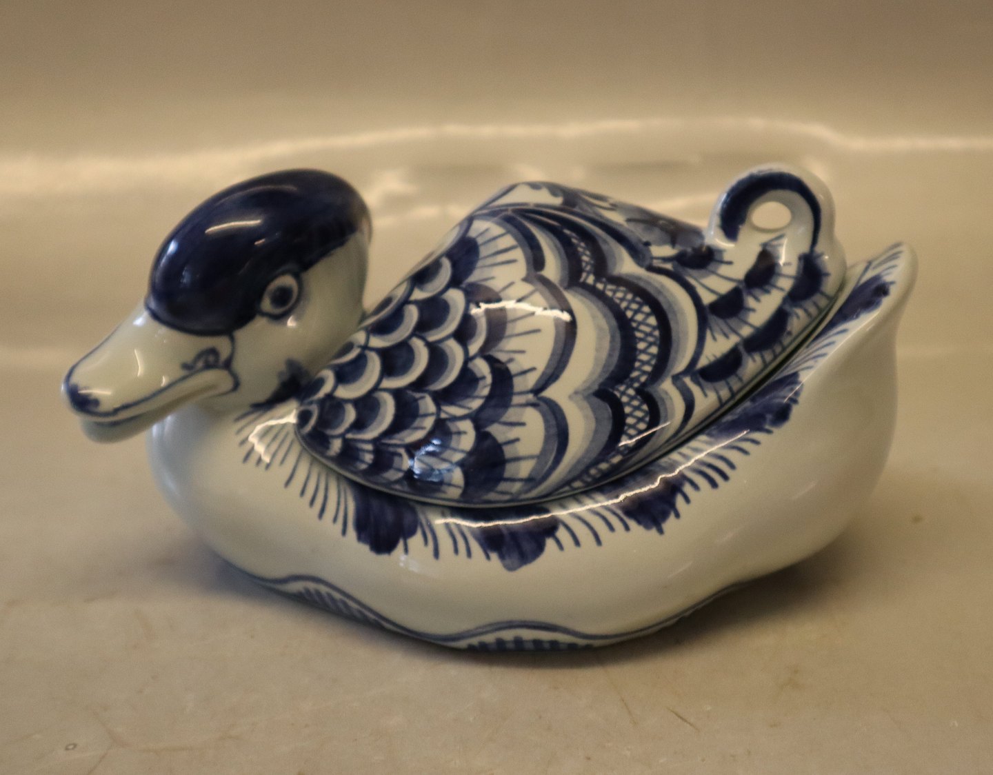 Aluminia Trankebar Royal Copenhagen fajance 3043 - 1058 Andefugl Bonbon skål med låg 9 x 17 cm Design Nils Thorsson 1922 skål i fin stand