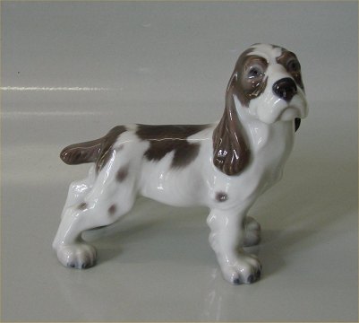 Description: 72 Lyngby Standing Cocker Spaniel 13 x 13 cm Marked with a Royal Crown Handpainted, Copenhagen Made in Denmark. The stamp of Copenhagen Porcelain Painting Factory (KPM). In mint condition