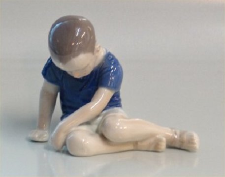 : Bing & Grøndahl figur Siddende dreng Design Inge Plockros Irminger 12 cm