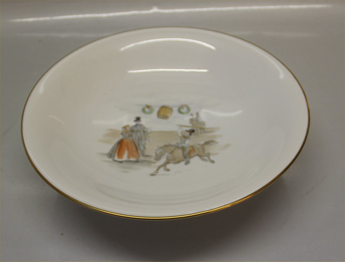 Beskrivelse: 206 Stor skål på fod 24 cm (429) Ringridning i Tønder Folkedragter på B&G porcelæn Årestrup - Aarestrup - Nationaldragter