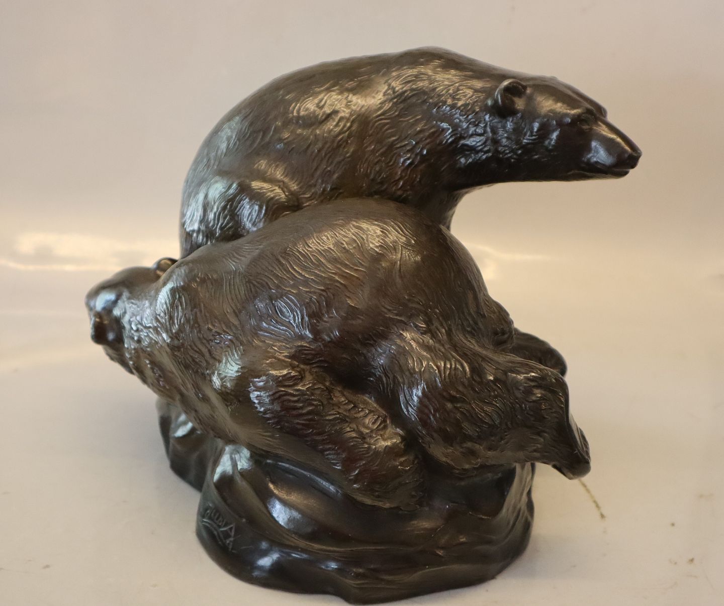 Beskrivelse: Bjørnegruppe Disko fra Just Andersen 24 x 32 cm Stemplet Just A D2102 i fin og hel stand Isbjørne