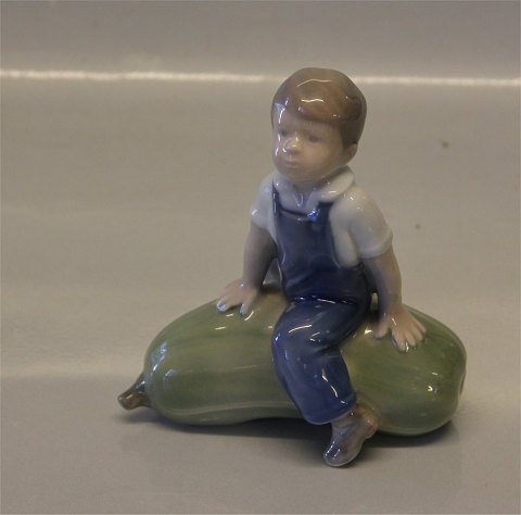 Beskrivelse: Royal Copenhagen 4539 RC Dreng på Græskar 12 cm J.M. Nissen 1. og i hel og fin stand