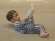 Kgl porcelænsfigur 3580 Dreng liggende på ryggen i pyjamas 6 x 15 cm