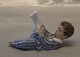 Beskrivelse: Royal Copenhagen 3580 Dreng liggende på ryggen i pyjamas 6 x 15 cm og i hel stand Dreng i Nattøj