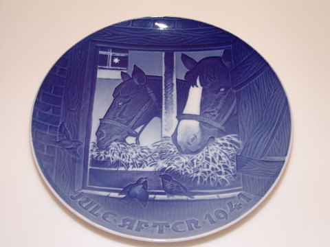 : Bing & Grøndahl Juleplatter (BG) fra 1941 "Heste i stalden nyder julemåltidet". Design Ove Larsen. I fin og hel stand