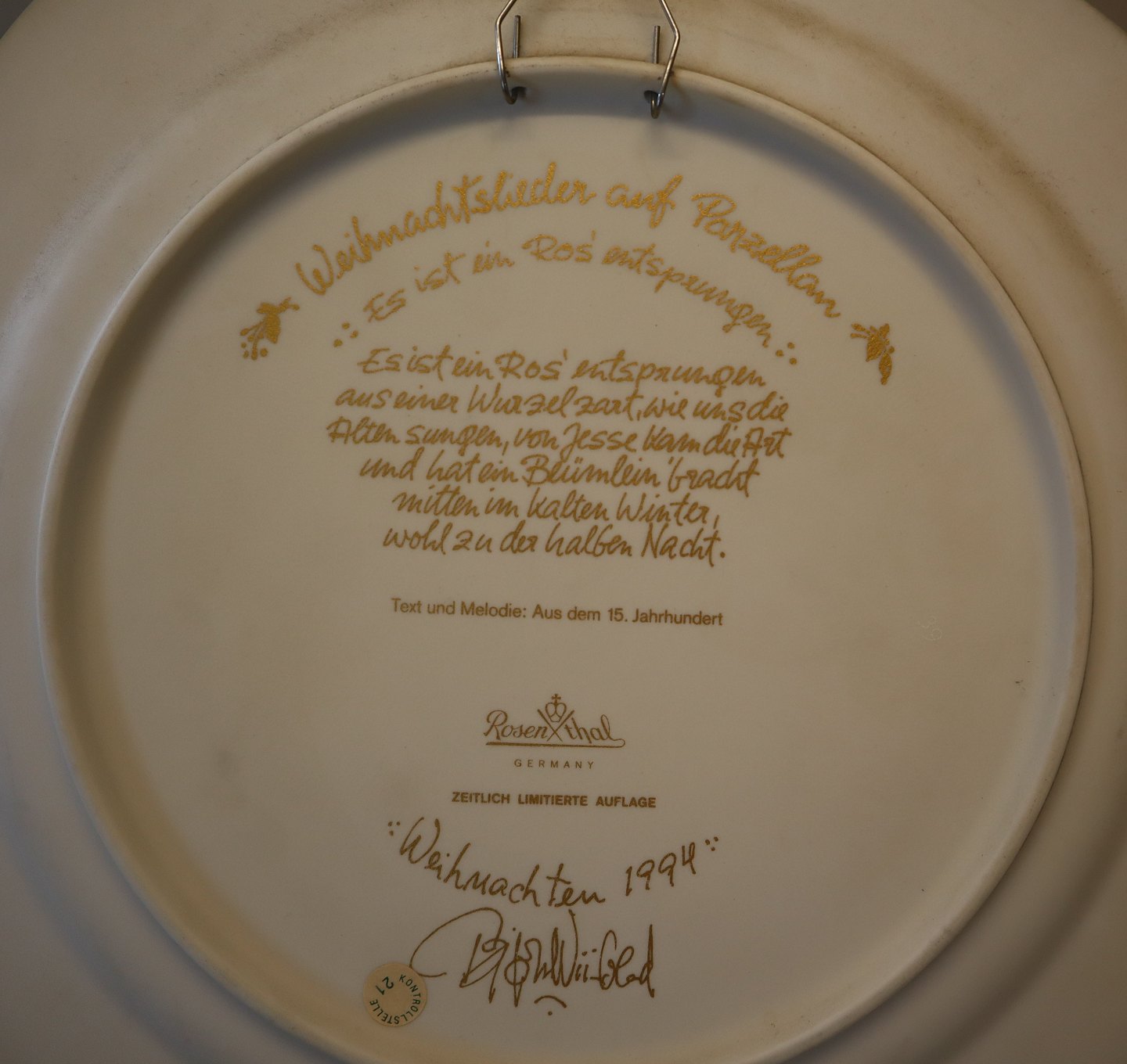 1994 Juleplatte Weihnachtslieder auf Porzellan "Es ist ein Ros` entspengen" ( "En rose så jeg skyde") Bjørn Wiinblad Weihnachsteller Winblad by Rosenthal Julens sange på porcelæn 29 cm