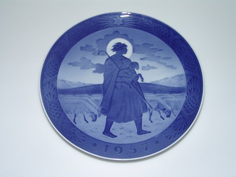 Beskrivelse: Royal Copenhagen Juleplatte (Kongelig, kgl) fra 1957 "Hyrde med får". Designed af Hans Henrik Hansen. I fin og hel stand.