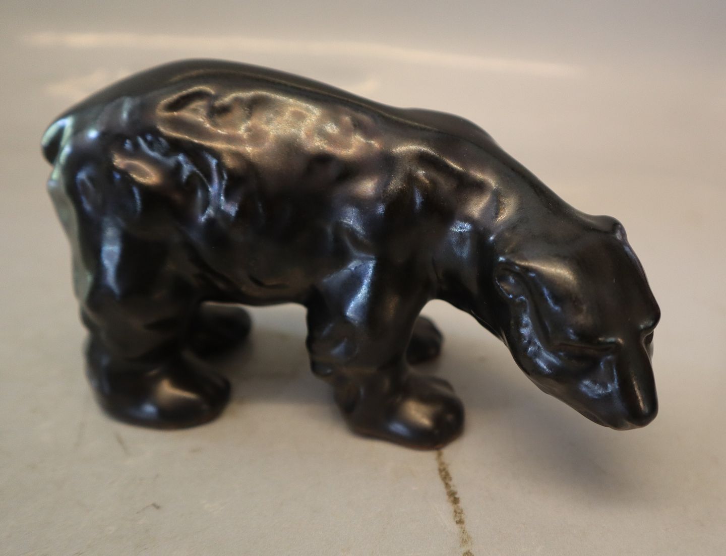 Michael Andersen 4055 Stående Isbjørn 7 x 14 cm Sortglasseret Bornholmsk Keramik