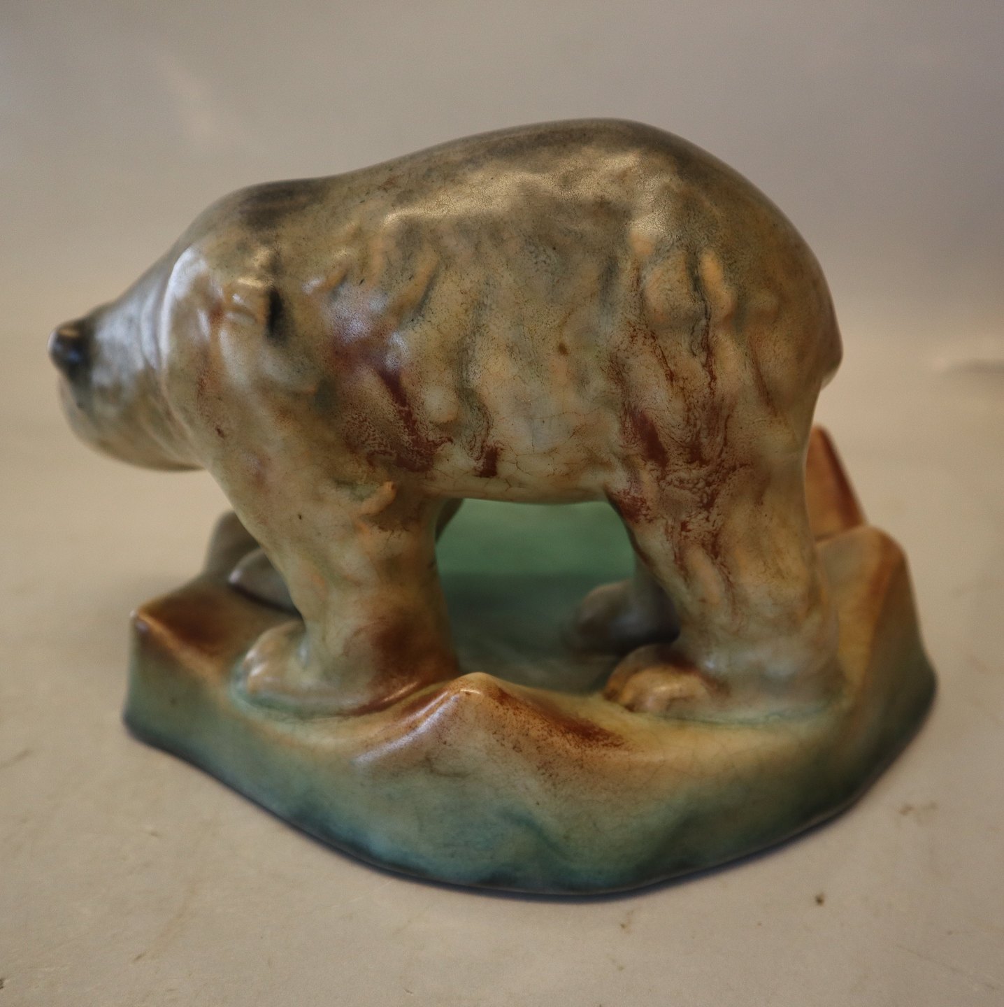 Michael Andersen 348 - Brun Grøn Glasseret isbjørn på fad 16 x 23 cm Bornholmsk Keramik
