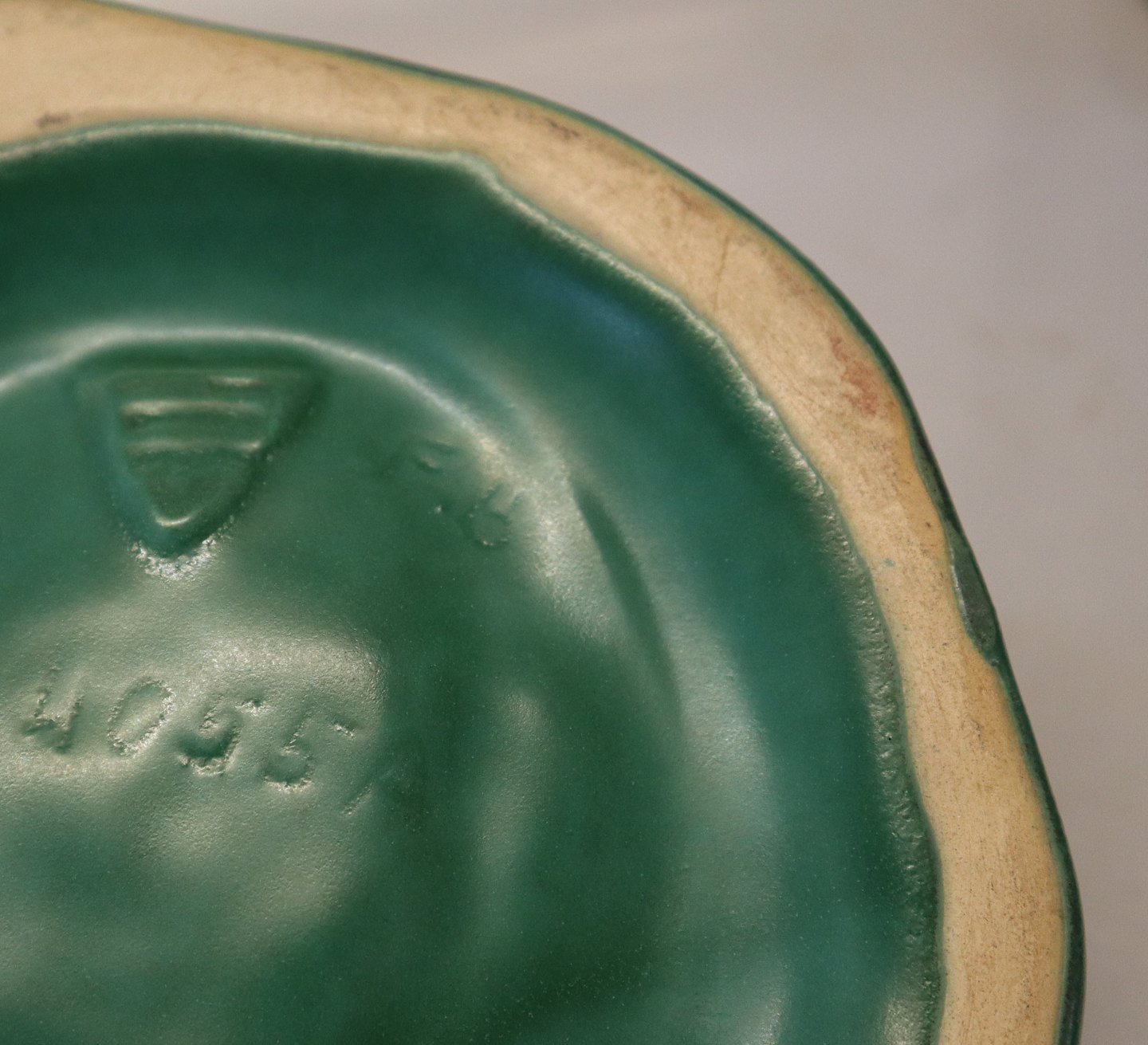Michael Andesen 4055 A Grønglaseret Isbjørn på fad 9 x 15 cm Bornholmsk Keramik