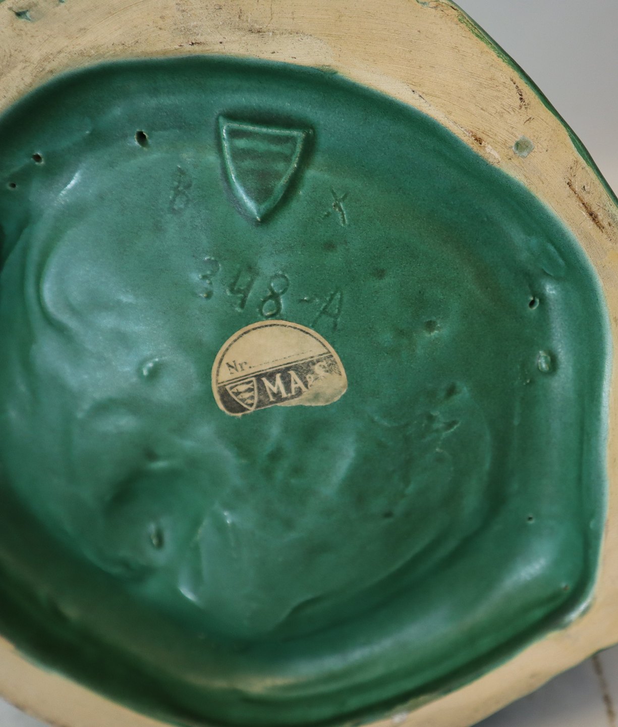 Michael Andersen 348 - A grønglaseret isbjørn på fad 16 x 23 cm Bornholmsk Keramik