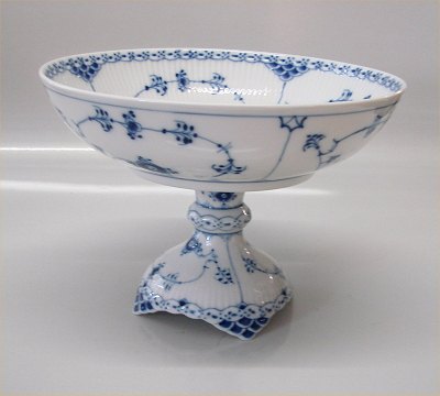 Kongelig Dansk Porcelæn Musselmalet Halvblonde 513-1 Salatfad, rundt på høj fod,