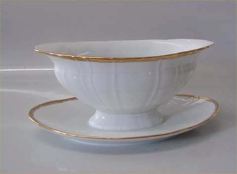 Bing & Grøndahl Offenbach 008 Sovseskål med hank 11 x 24 cm 3,5 dl (311) Hvidt kantet porcelæn med bred guldkant. I hel og fin stand