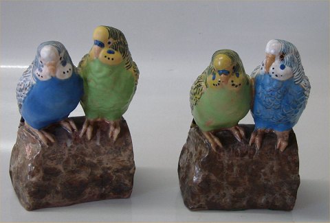 Beskrivelse: Royal Copenhagen Fajance Aluminia 3280-485 Undulater Fajance 15,8 cm Blå (tv) og Grøn (th) Design Jeanne Grut