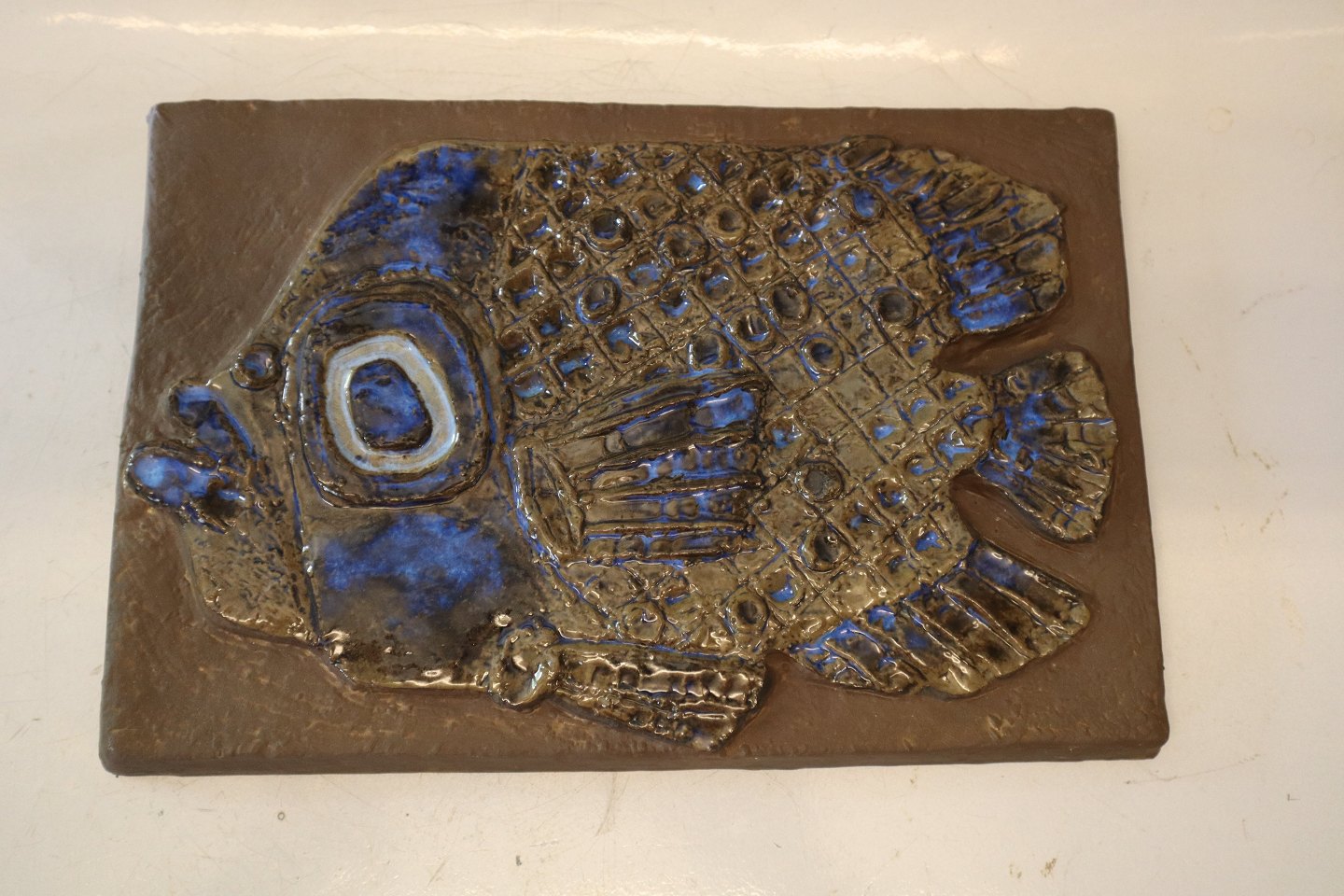 2912-164 Relief "Den blå Fisk" 20 x 30 cm (I.L.K.) 1960 Tenera Aluminia kunstfajance
