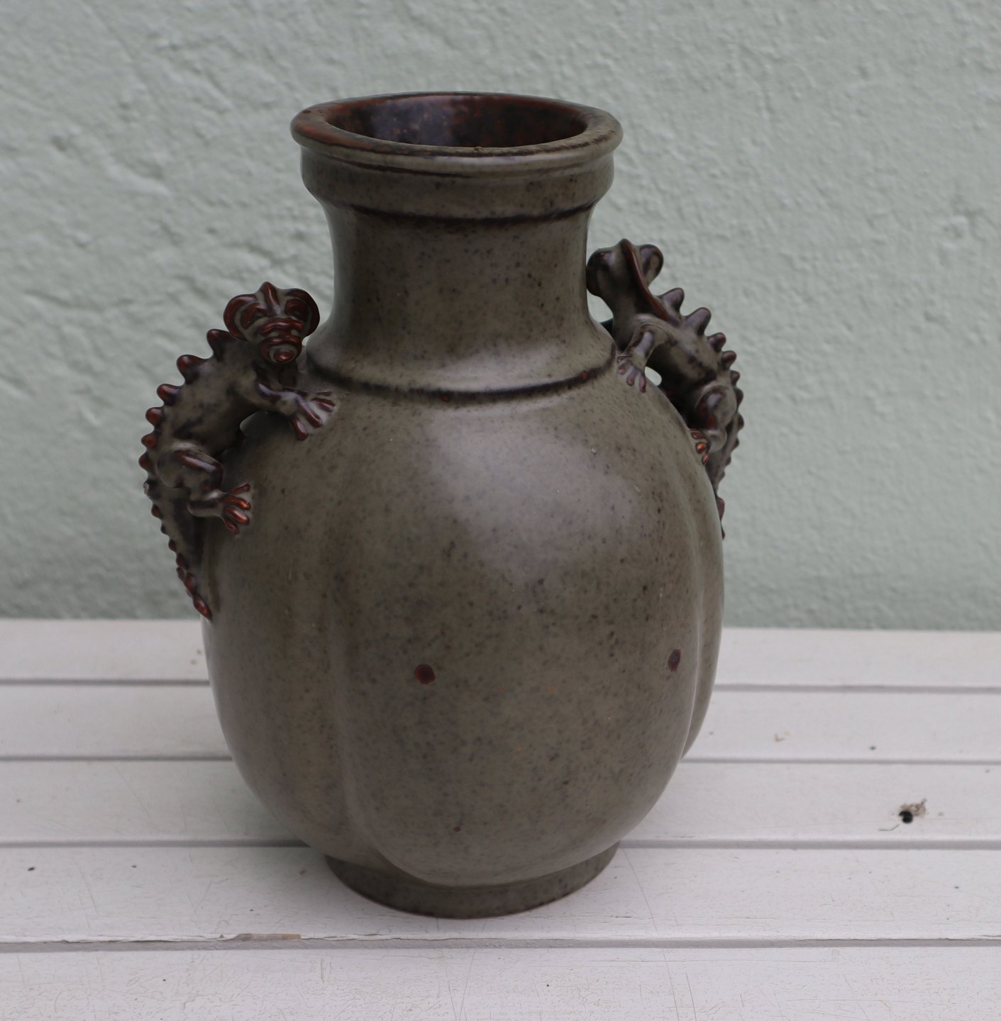 20125 Kgl. Krukkke med firben 21 cm, Bode Willumsen, maj 1927 Kongelig Dansk Stentøj