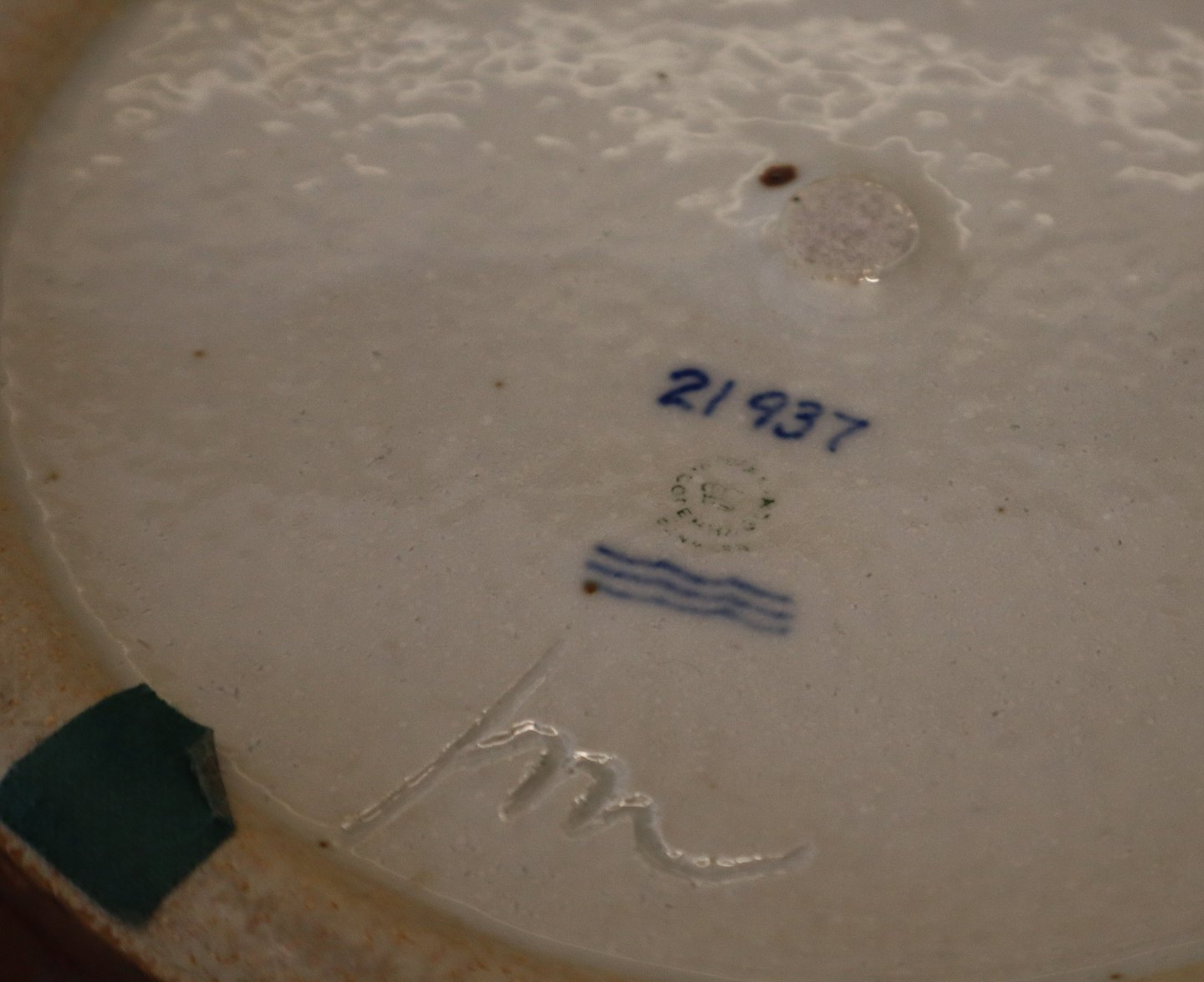 Beskrivelse: Royal Copenhagen 21937 Kgl. Fad med fantasifugle 8 x 30 cm juli 1962 JM Jørgen Mogensen stentøj I fin og hel stand