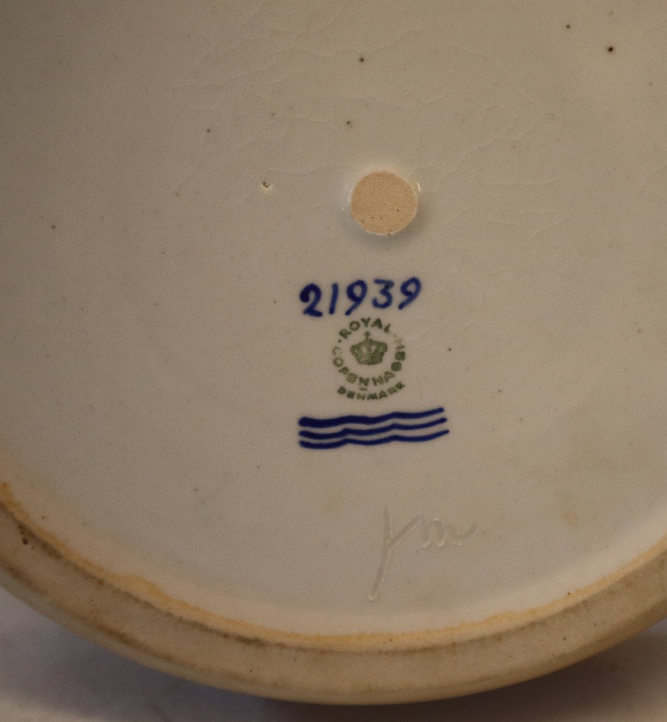 21939 Kgl. Rund skål - Turkis & terrakutta 5 x 22 cm JM juni 1962 Jørgen Mogensen Kongelig Dansk Stentøj