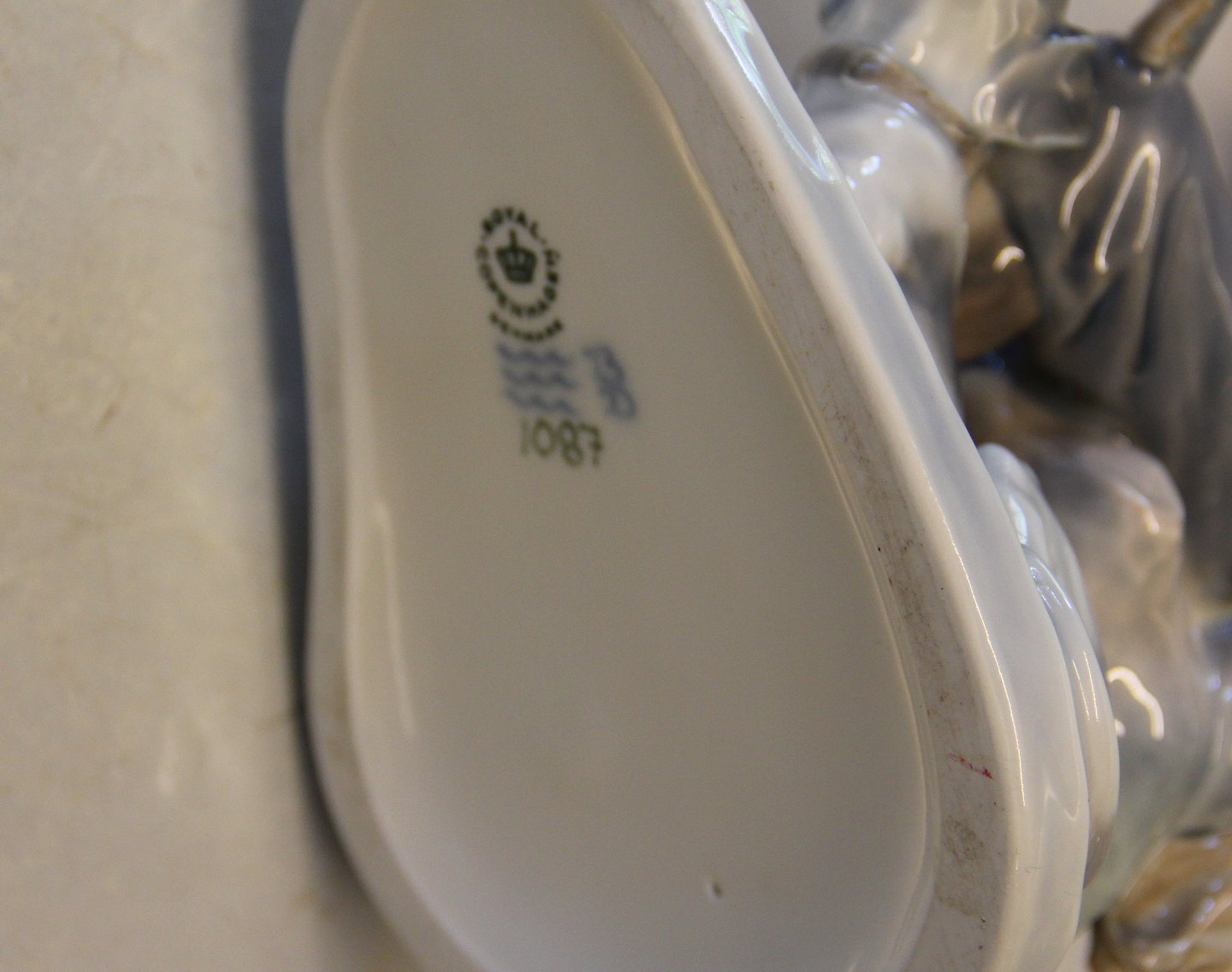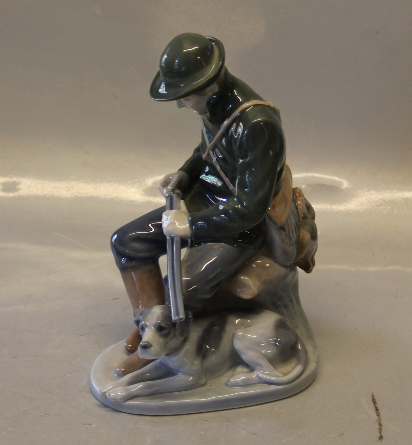 Kgl Porcelæn Jæger med hund 1087 Chr Th. 20 x 10 cm
