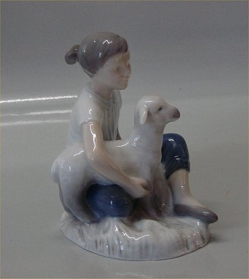 : Bing & Grøndahl 2336 Pige med lam 14 cm 2. sort. i hel og fin stand Bing & Groendahl