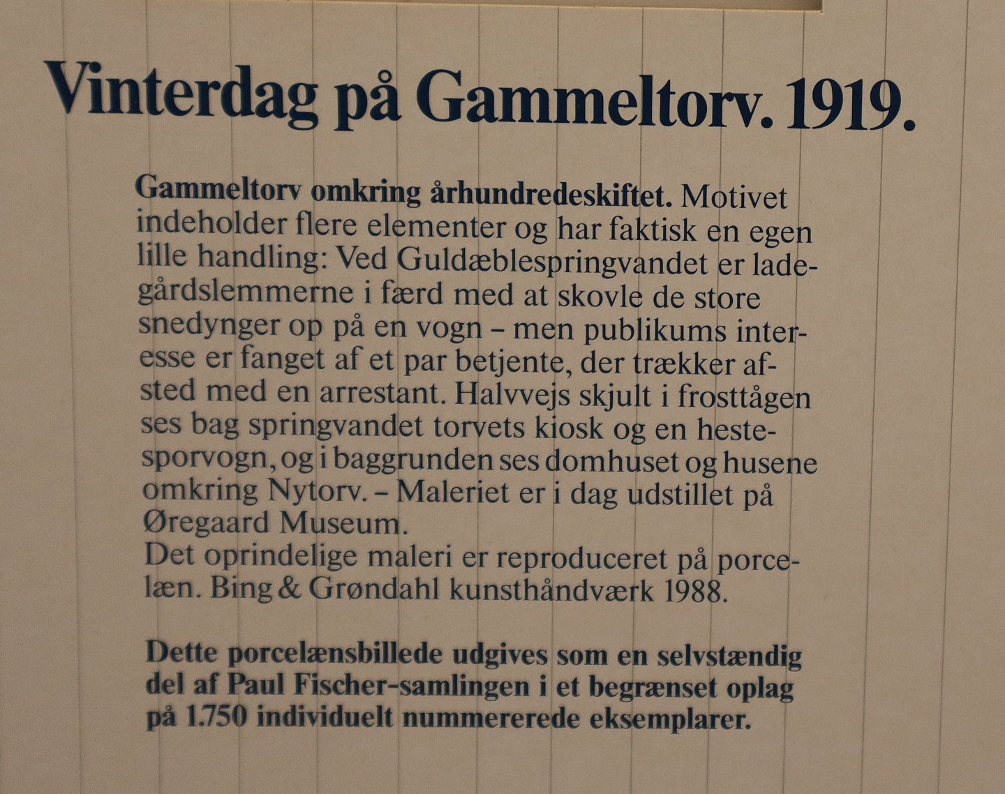 Beskrivelse: Bing & Grøndahl porcelænsmaleri i guldramme33.5 x 47 cm Paul Fisher (1860-1934) Vinterdag på Gammeltorv 1919 No 1613 af 1750