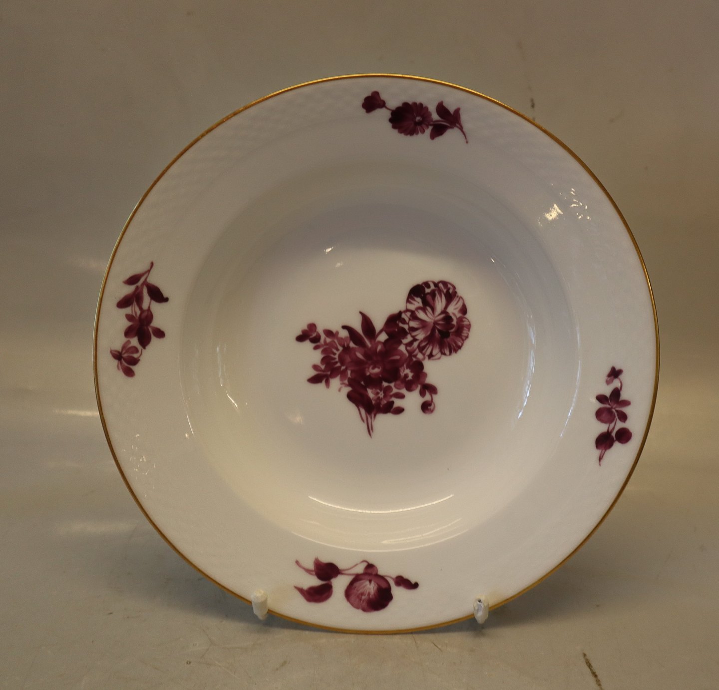 8107-427 Stor dyb tallerken 25,5 cm Purpur Blomst Kongelig Dansk Porcelæn Flettet med guldkant