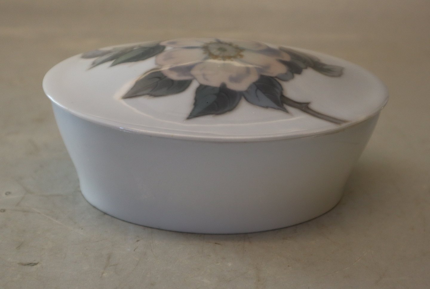Beskrivelse: 173-586 Kgl. Art Nouveau Bonbon låg skål med låg Brombærblomst 7 x 14 cm 1st. fra Royal Copenhagen