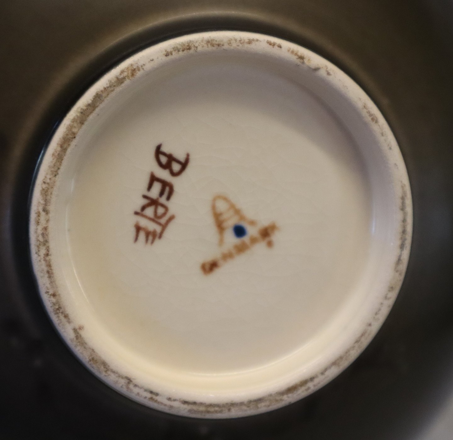 Berte Unika skål 10.2 x 19.8 cm 1947 Berte Jessen Royal Copenhagen Aluminia fajance I fin og hel stand