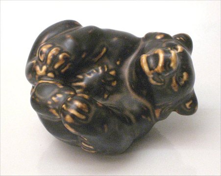 Royal Copenhagen Art Pottery 22245 RC Brown Bear cub on the back 9 cm Design Jeanne Grut after KK 0245
