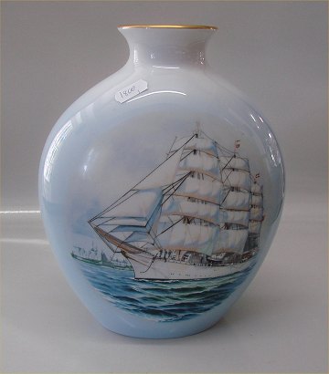 Beskrivelse: B&G 8872-5508 Windjammer Vase Begrænset oplag nr. 1598 af 2500 Design James E. Mitchell 1982 Skoleskibet Danmark ved Kronborg 26 cm Windjammer platter haves også