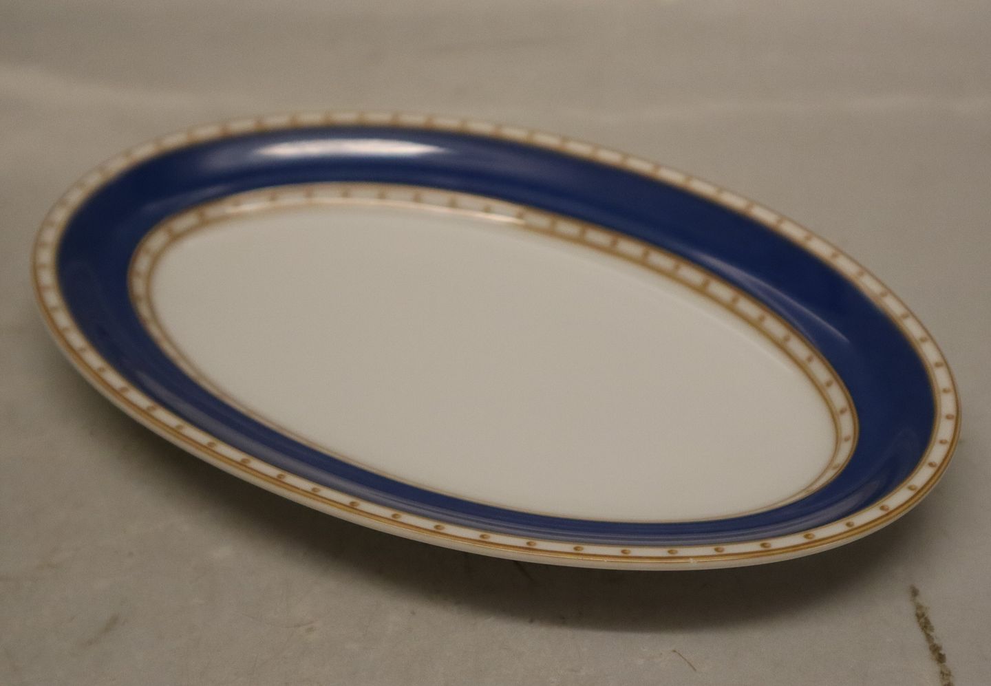 349 Oval Asiet 19 cm Kgl. Liselund Moderne stel i lyse og mørkeblå med og uden flet. Design Diana Holstein 2001 Royal Copenhagen