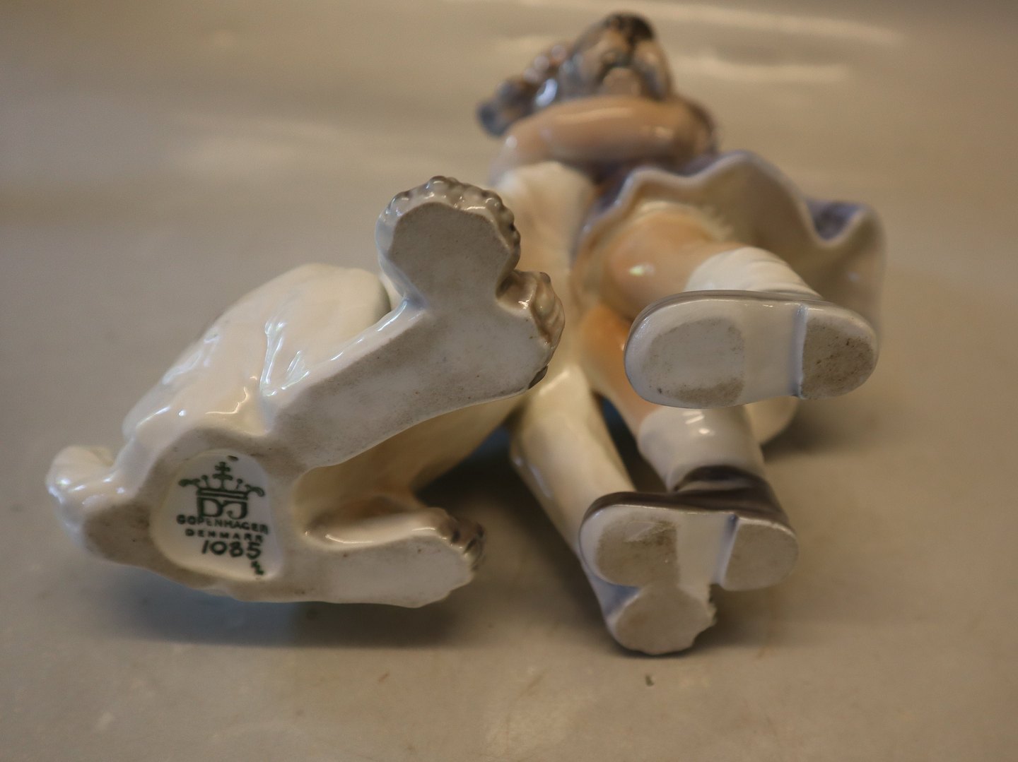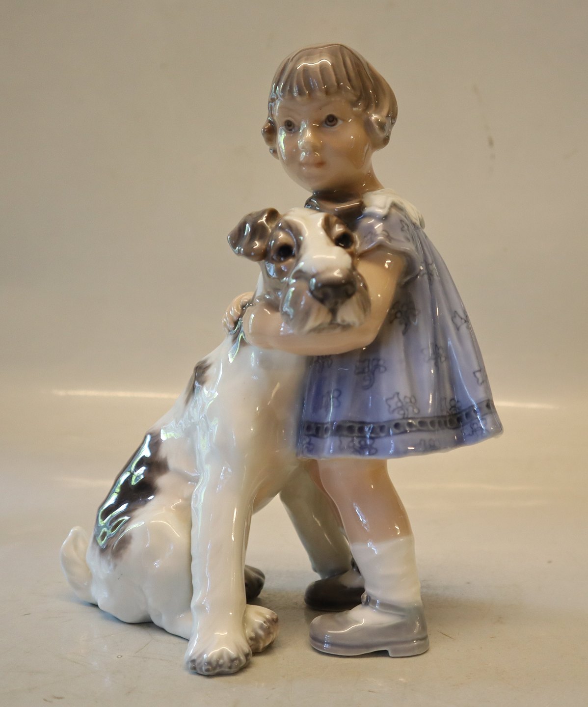 Beskrivelse: Dahl Jensen pige med fox terrier 1085. Figuren til salg er billede to og efterfølgende. DJ Copenhagen i hel og fin stand. Hundefigur